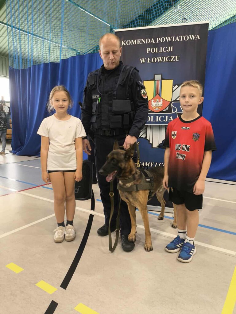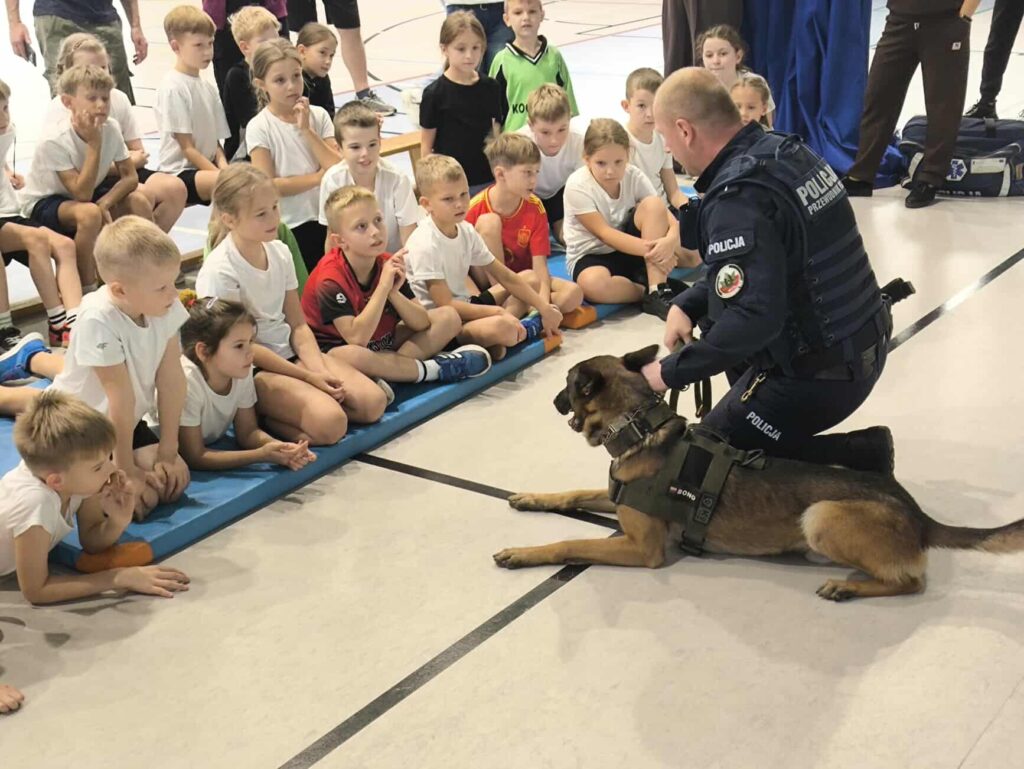 W przerwie dzieci mogły pogłaskać psa policyjnego i zapoznać się z jego pracą.