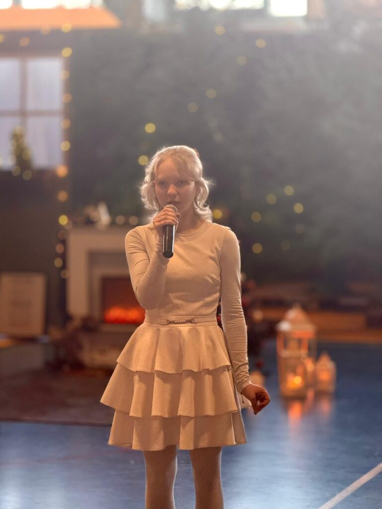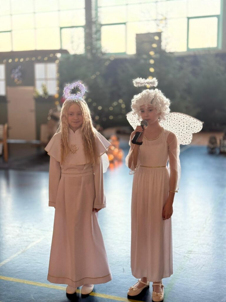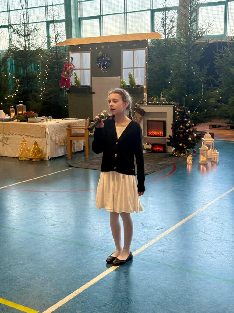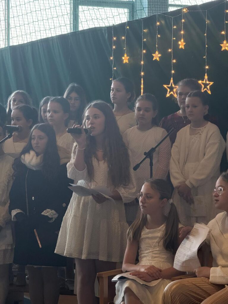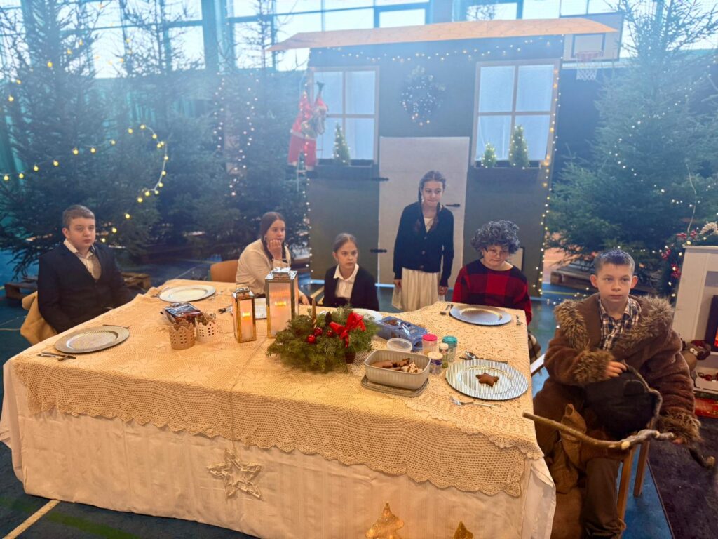 19 grudnia w naszej szkole zrobiło obejrzeliśmy spektakl świąteczny zatytułowany „Światło w ciemności”, który poruszył serca i wprowadził nas w prawdziwie bożonarodzeniowy klimat. Przedstawienie było pięknym połączeniem tradycji i nowoczesności – od świątecznych przygotowań, dzielenia się opłatkiem, szopki betlejemskiej, aniołów i Trzech Króli, po spotkanie ze Świętym Mikołajem , które wprowadziło naszą szkolną społeczność w jeszcze bardziej świąteczny nastrój. Całość dopełnił wzruszający występ chóru szkolnego .