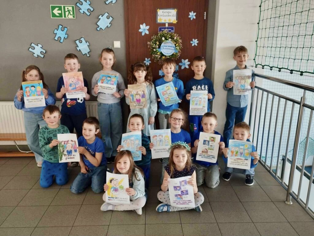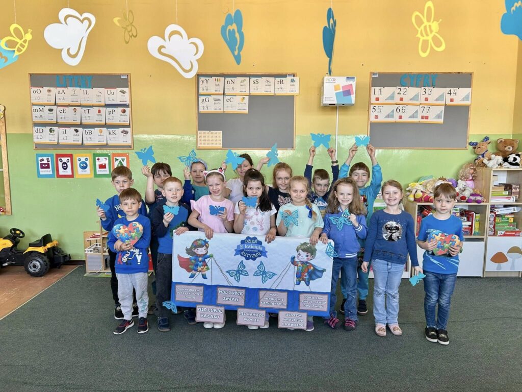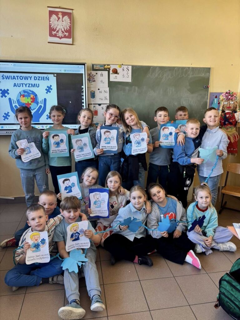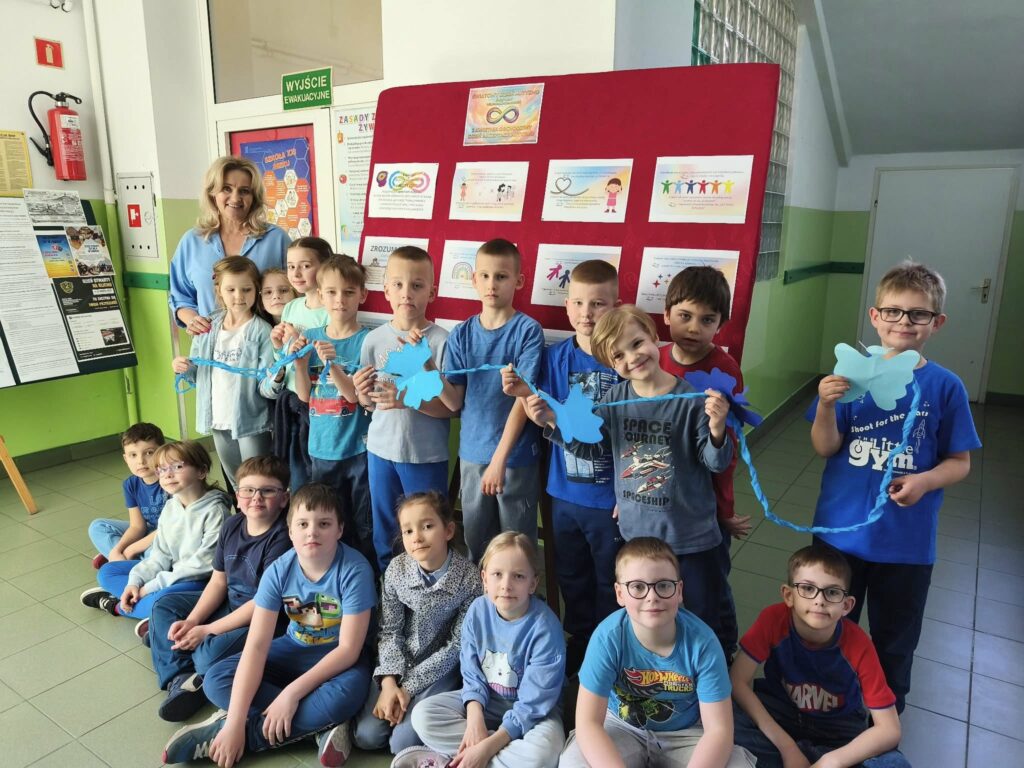 1 kwietnia 2026r. w naszej szkole obchodziliśmy Światowy Dzień Świadomości Autyzmu. Był to wyjątkowy czas, w którym dominował kolor niebieski – symbol solidarności i wsparcia dla osób w spektrum autyzmu. Uczniowie i przedszkolaki, ubrani w niebieskie barwy, wspólnie zamanifestowali swoją akceptację dla różnorodności. Podczas zajęć rozmawialiśmy o tym, że każdy z nas postrzega świat inaczej. Dzieci dowiedziały się, jak wspierać rówieśników w spektrum i dlaczego ich wyjątkowość jest cenna. To był dzień pełen uśmiechu, zrozumienia i wzajemnego szacunku. Wierzymy, że budowanie świadomości od najmłodszych lat pomoże stworzyć świat, w którym każdy czuje się dobrze i jest akceptowany.